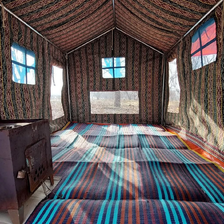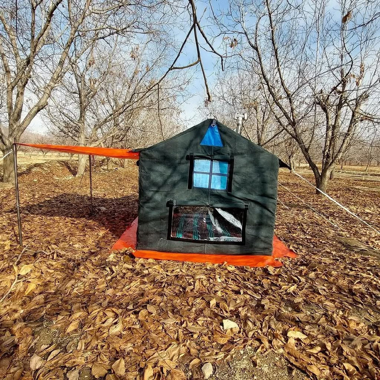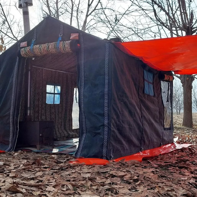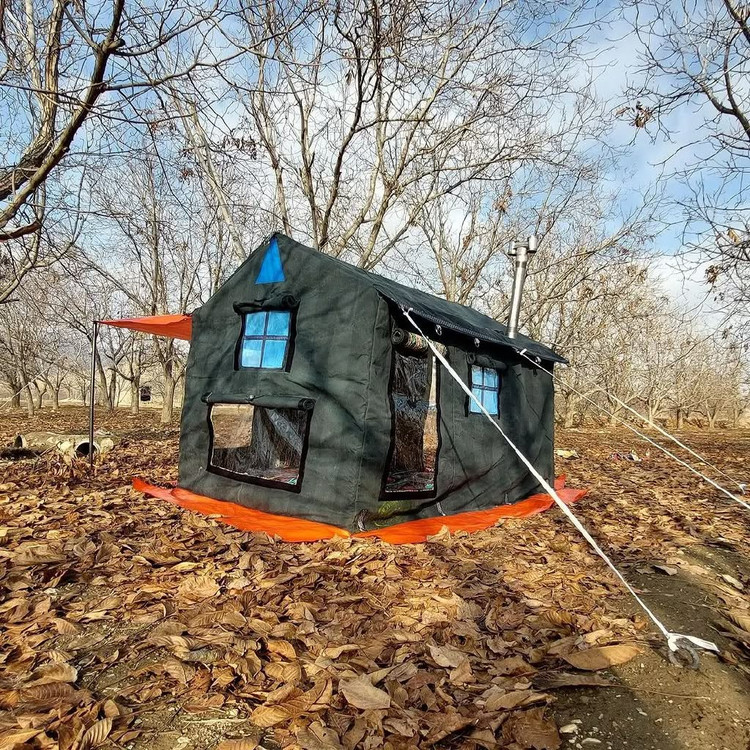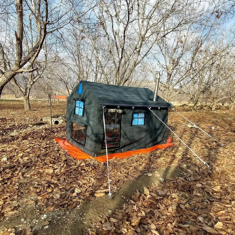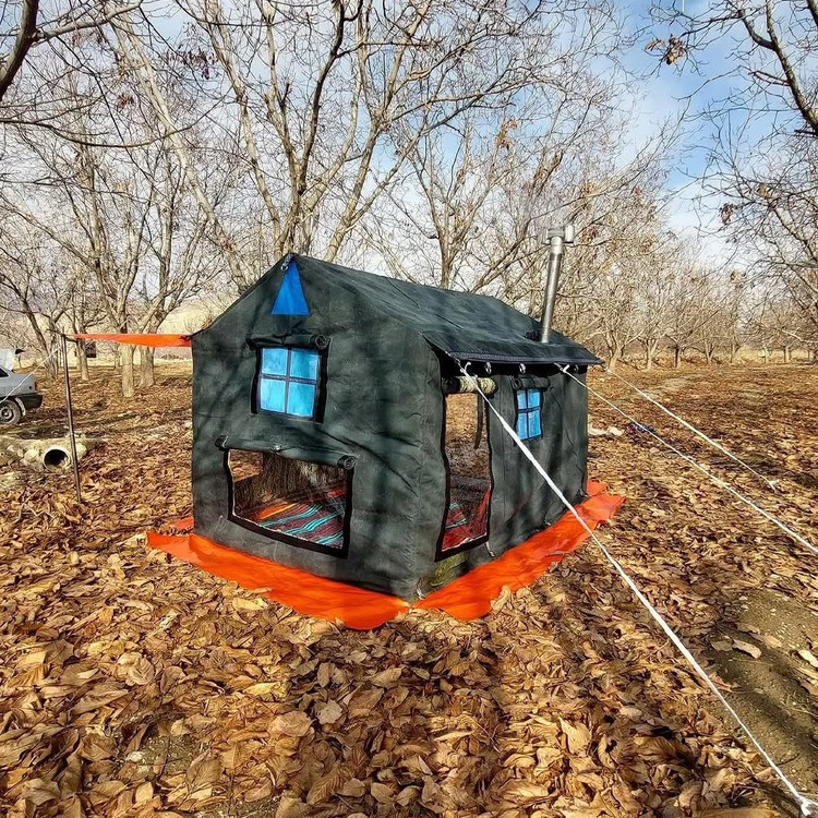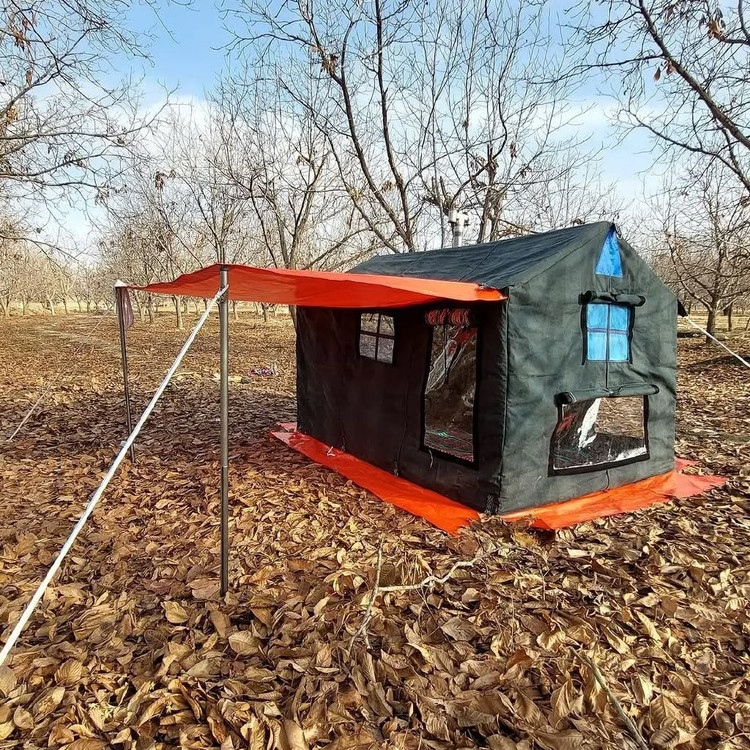 چادر شش نفره کلبه ای فول امکانات سایز دو در سه ارتفاع دومتر دارای اسکلت فلزی لوله صنعتی همراه با همه لوازم کاملا ضد آب و ضد تعریغ طول عمر بالایی داره